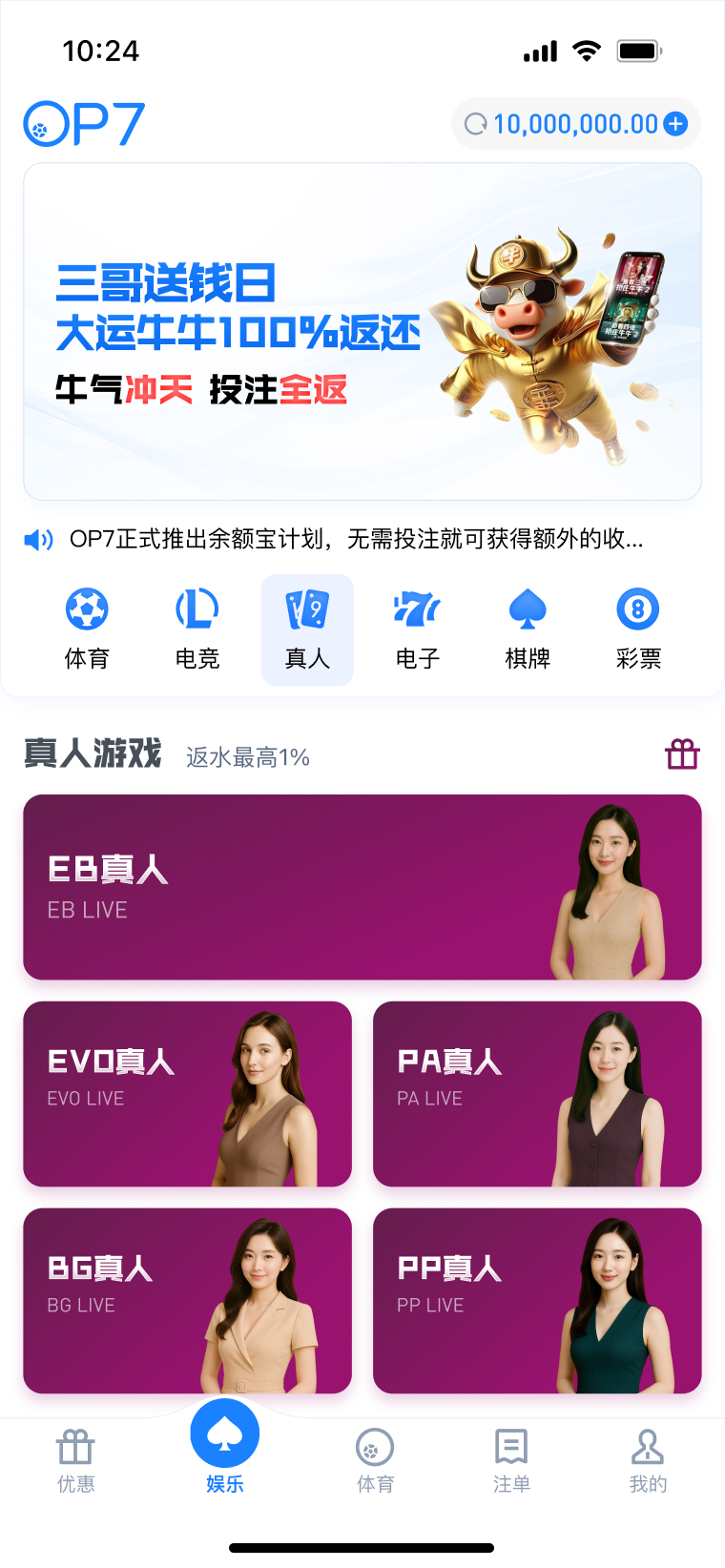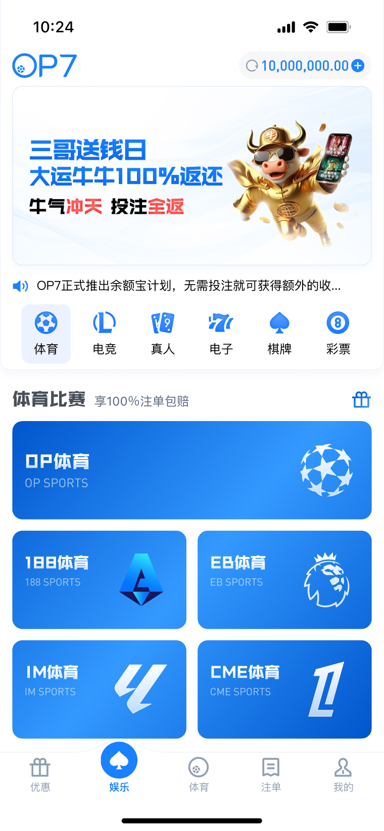 公告: 1、OP7最新域名 失联不迷路 永久域名:op7.io 2、冠军竞猜返利50% 最高1500元 3、【EB体育】维护通知 4、OP7霸王餐包赔 投注多场指定赛事,享指定场馆总负盈利包赔!